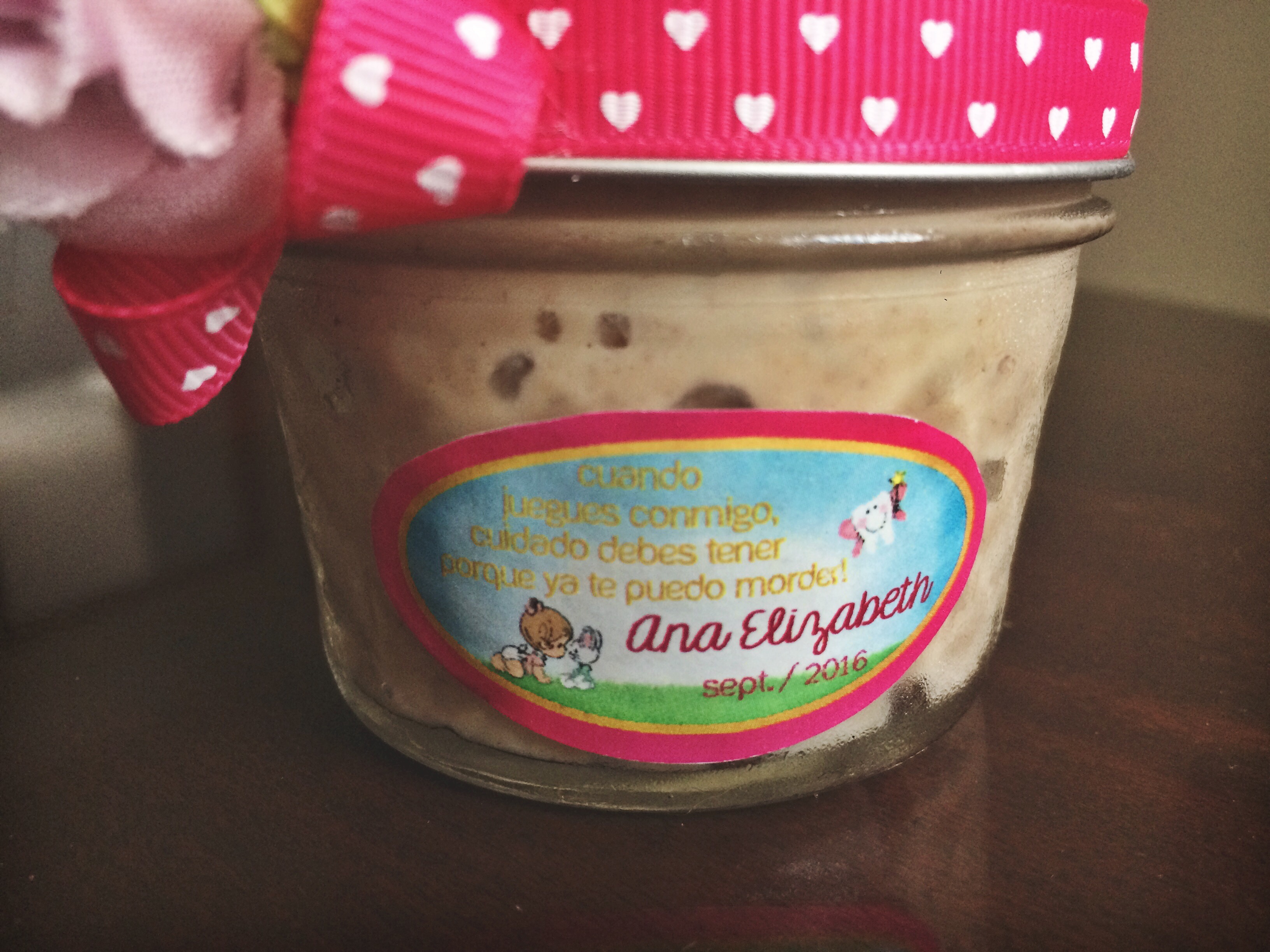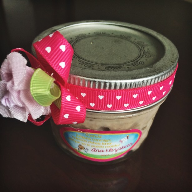 La tradición también habla de que la persona que vio el diente del bebe por primera vez es la persona que tiene que hacer el arroz con leche, en este caso sería yo, pero mi querida madre dicidió que ella se haría cargo de esta pequeña tarea. Me apoyé, también, en una amiga de la familia, LB Diseños Creativos, para decorar los frascos donde se colocó el arroz con leche.