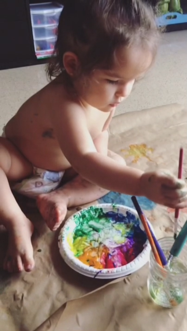 Un día, buscando como entretener a #AnaTerremoto en la casa, me tope con la idea de ponerla a pintar. Tengo que admitir que la idea me aterraba, me imaginaba las paredes de mi casa con diseños de las palmas de Ana de mil y un colores, mis muebles con manchas gigantescas de pintura y hasta la ropa llena de pintura y, aunque aun me aterra la idea, siento que debo de ignorar mi miedo y permitirle a Ana descubrir su «lado artístico».