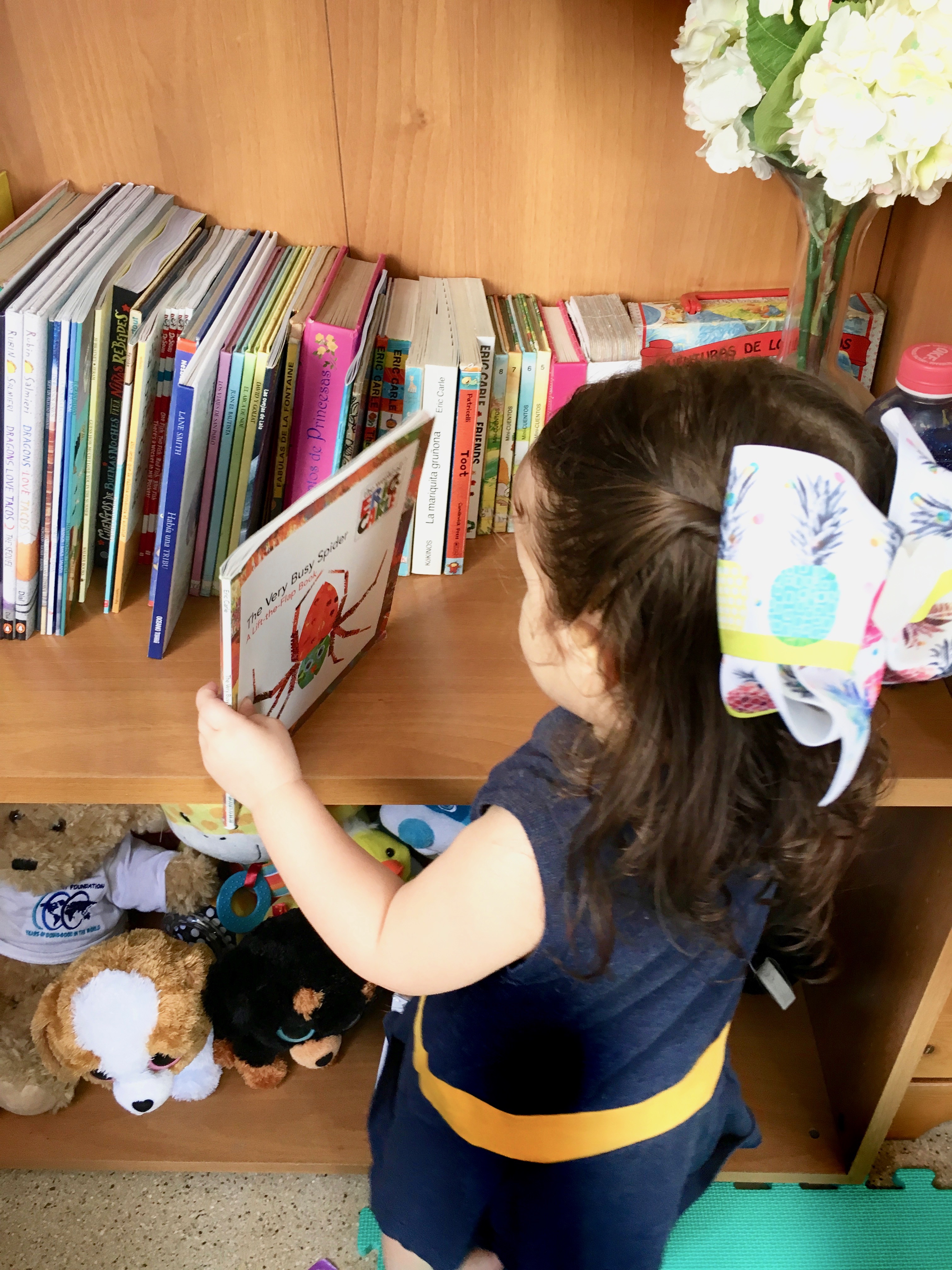 Con #HuracánAbigail, la cosa fue un poco diferente, ella desde que nació nos ha visto y escuchado en los ratos donde leíamos con Ana. Ella tiende a ser un poco más ruda con los libros y ella es la que ha causado que varios de los libro estén llenos de tape y goma por todos lados. Lucho mucho con esconderle los libros, quitárselos, treparlos para que no los dañe. Pero al final del día se que si no están a su alcance, no los verá y probablemente no los pida.